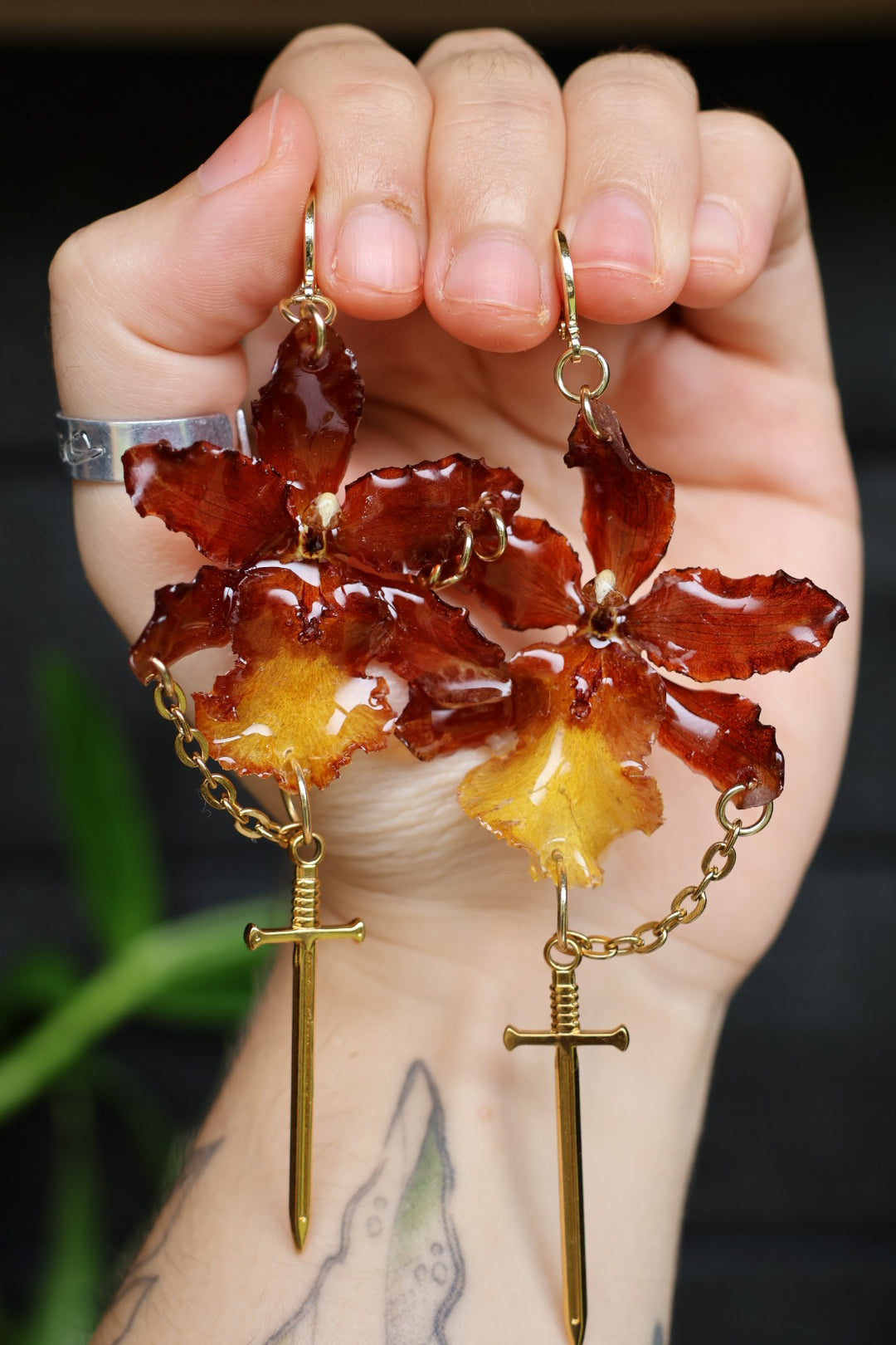 Real Purple Orchid Earrings with Amethyst – Handmade Botanical Jewelry, Fairycore Orchid Flower Earrings